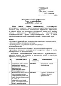План работы Совета профилактики в школе на 2025-2026 уч.год